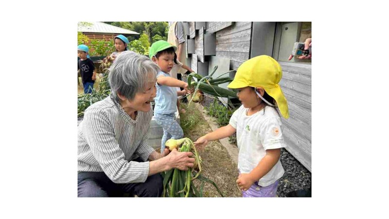 具体的な取り組みとしては、世代間交流として畑で一緒に野菜を育て、収穫した野菜を皆で味わう活動や毎週、子どもたちが施設を訪れ、高齢者の方々と触れ合い、歌を歌ったり、ゲームをしたりしています。